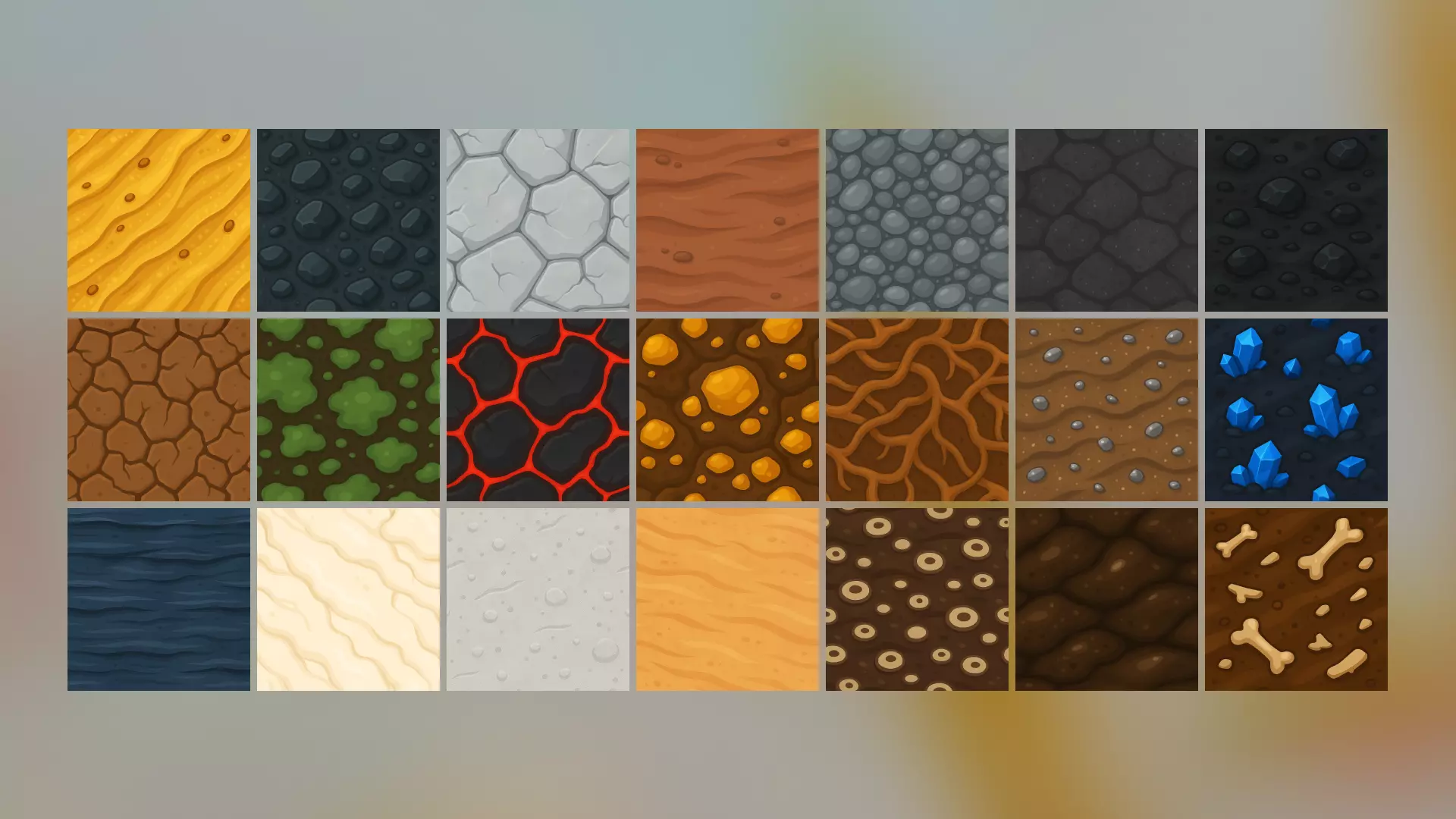 - Terrain Textures: Dirt, sand, stone, volcanic earth, and mineral deposits
